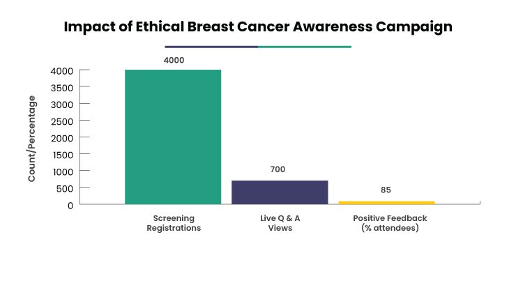- Promoted free mammogram camps and live Q&A with female oncologists
